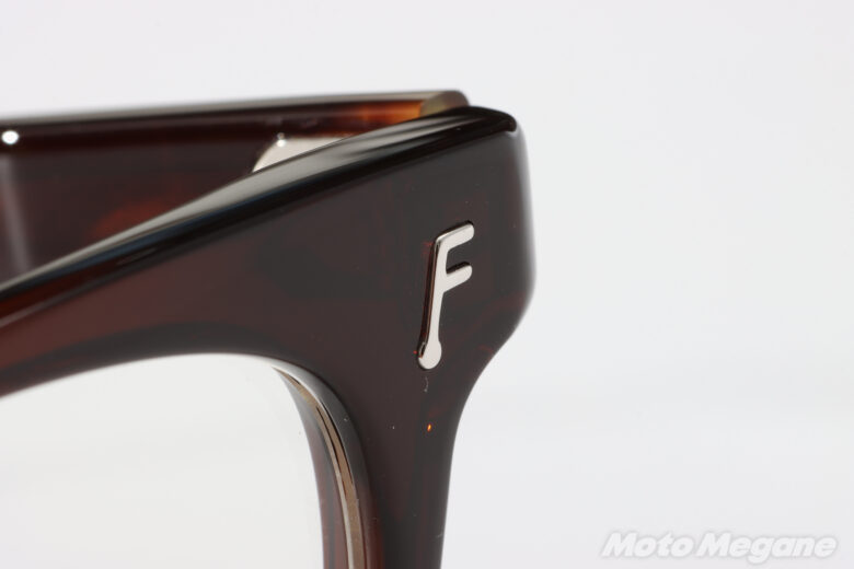 従来はコストやレンズ取り付けの作業性から、レンズの外側部分に設けられるフレームの繋ぎ目のビスだが、後方確認時に視界に入ってしまうため、Type Fではあえて内側に設ける拘りの設計。