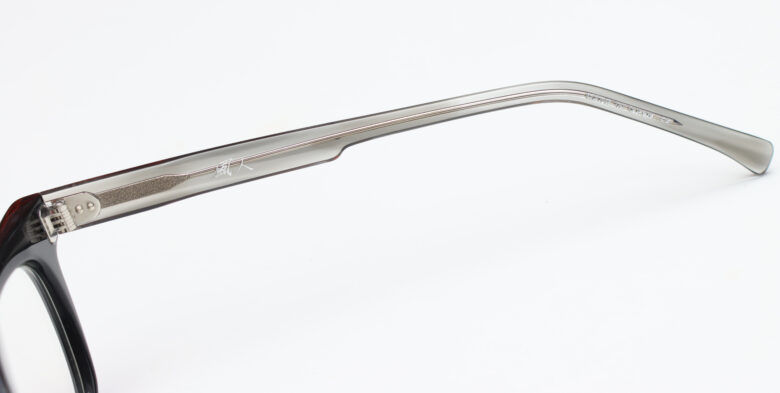 3つめのチタン素材となるのがテンプル(腕)の付け根の部分に使われ、抜群のホールド感を生む「ゴムメタル・チタン」だ。サスペンションの様なしなやかさで、メガネとの一体感を高める。