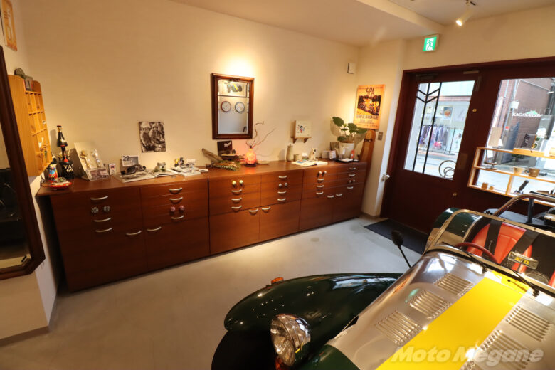 軽量かつ丈夫なチタンをベースにメガネの世界的産地である鯖江の工場で生産されたバイカーズグラスは、ライダーの間で評判を呼び、時には北海道や九州など遠方からも来店客があるほどだ。