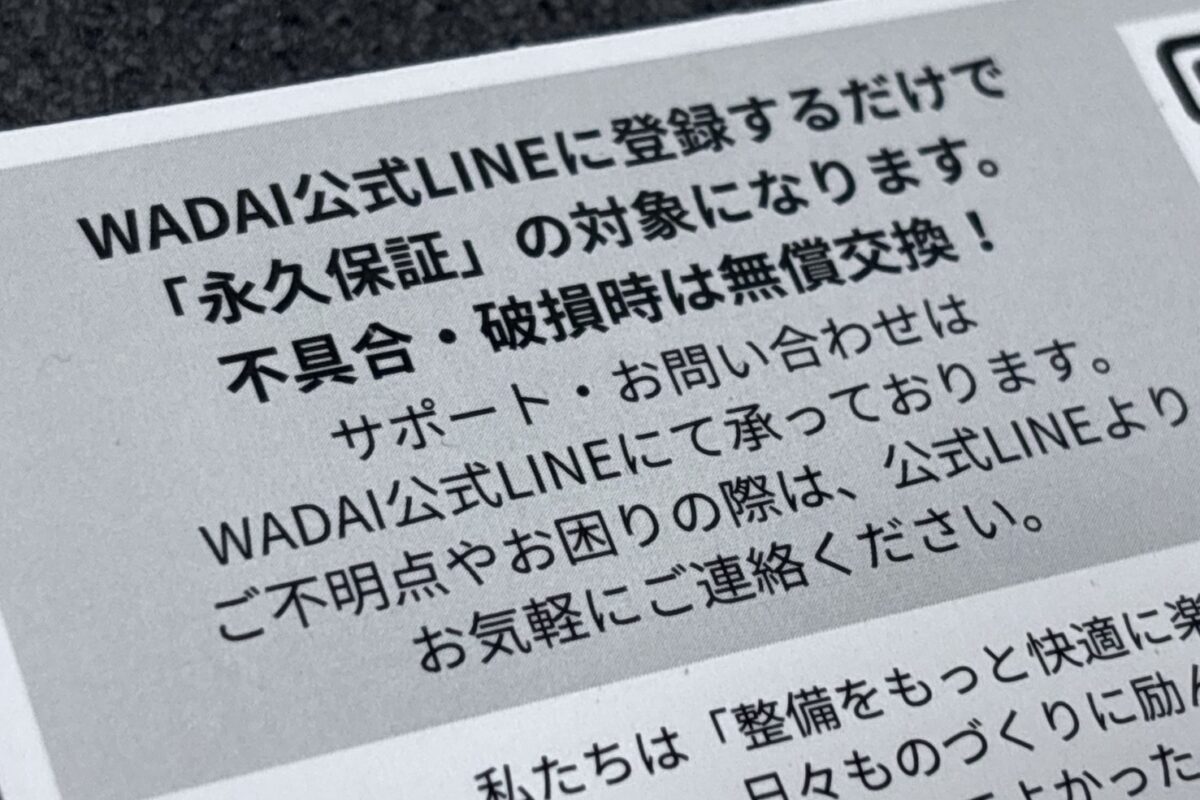 しかもWADAI公式ラインに登録するだけで、永久保証が受けられることからメーカーの自信がうかがえる。不具合や破損が生じた場合は無償交換をしてくれるアフターケアも万全だ。