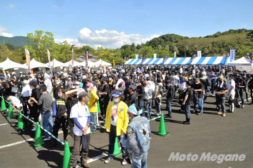 集合写真はツーリングや遠方から来た方への配慮から午前と午後の2回行われました。今回はドローンによる空撮もありました。後日、スズキHPの公式イベント報告で映像がアップされる予定なのでお楽しみに。