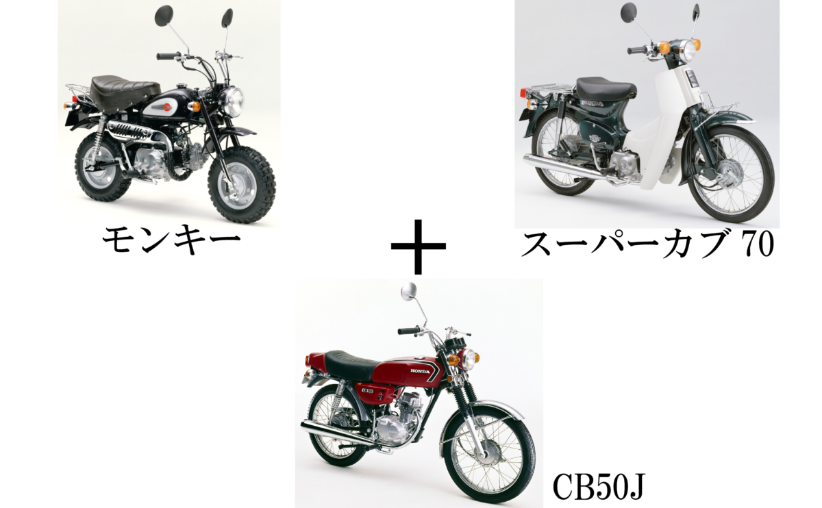 「モンキー」「CB」「スーパーカブ」というホンダの名車3台を合体させて珠玉の1台を作ろうというのが今回のねらいである。