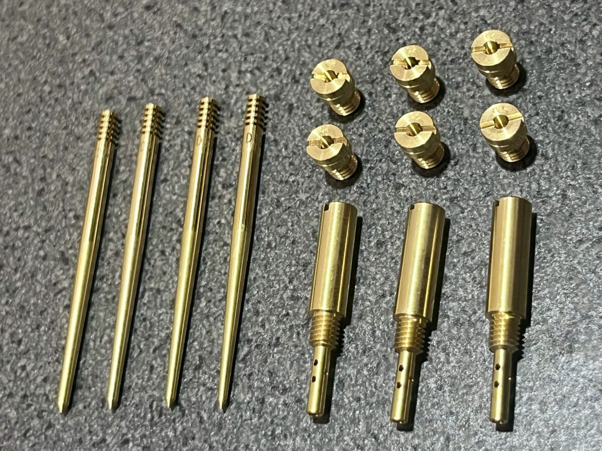 セッティング用にメインジェット6種、パイロットジェット3種、ジェットニードル4類が用意されている