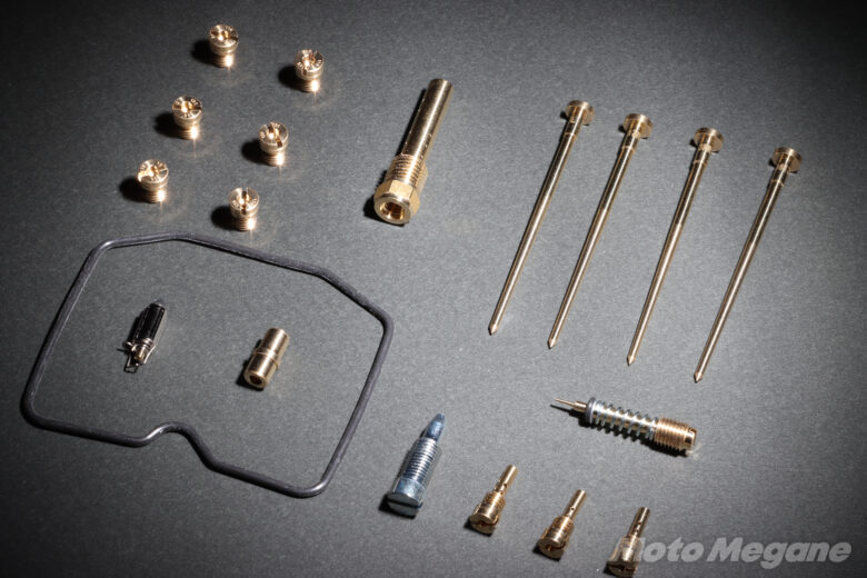 ここまでで紹介した燃料のメイン系統を構成するメインジェット、ジェットホルダー、ジェットニードル、ニードルジェットの4つの部品はすべて燃調キットに含まれている。