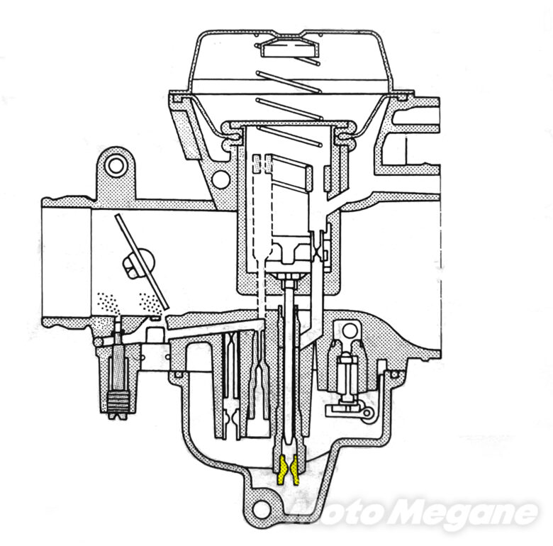 キャブレターは始動時、アイドリング時、低速域(スロットル開け始め)、中速域(スロットル開度中)、高速域(スロットル開度大)で、それぞれ異なるジェットが役割を分担している。