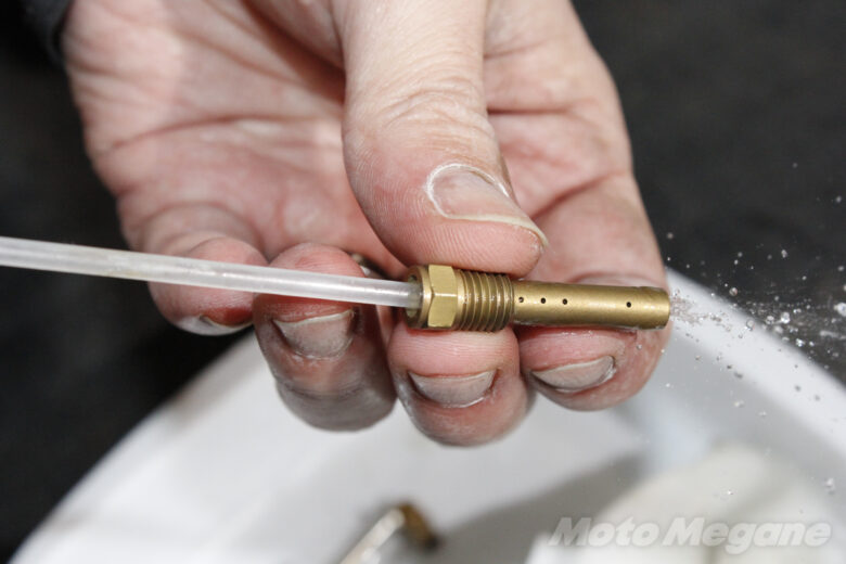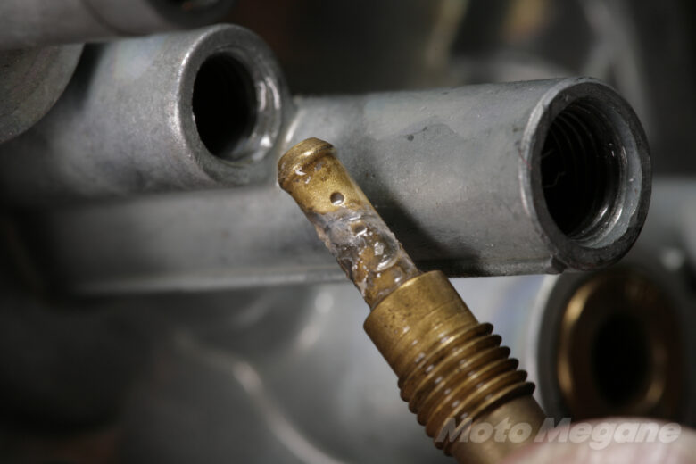 また、ジェットは真鍮製で柔らかく、腐食や摩耗により穴が拡大してしまうこともある。そうなると、キャブレターの調子は一気に悪くなってしまう。