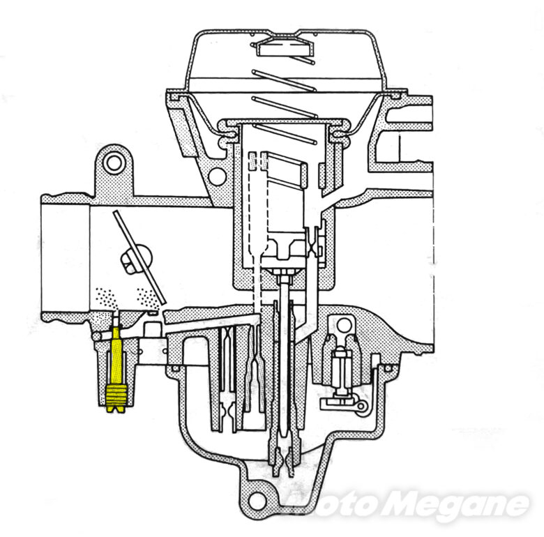 キャブレターはエンジン回転数に応じた吸入負圧とスロットル開度によって混合気の量を決めている。その計量を行うのが「ジェット」や「ニードル」だ。