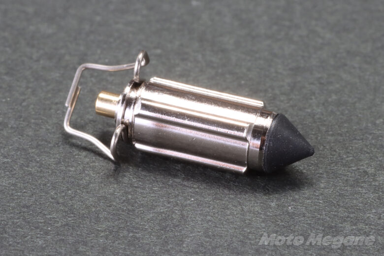 ニードルバルブ(フロートバルブ)はフロートと連動し、燃料タンクからキャブレターに流れるガソリンの量を調節して常に一定に保つ働きをする。