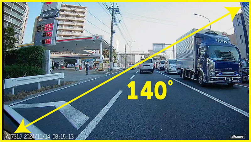 広角140°のワイド撮影! 夜間の映像も鮮明に記録