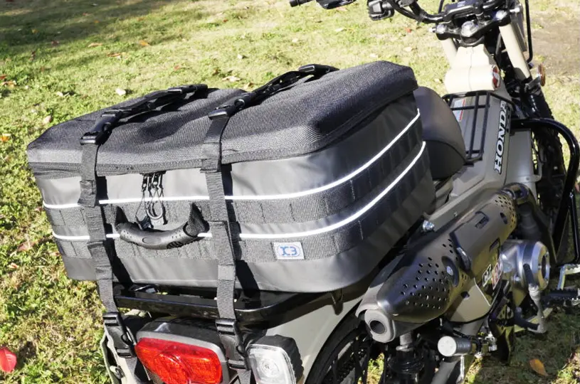 ハンターカブの場合は、前はタンデムステップ、後ろはナンバーの反射板でしっかり固定できた。