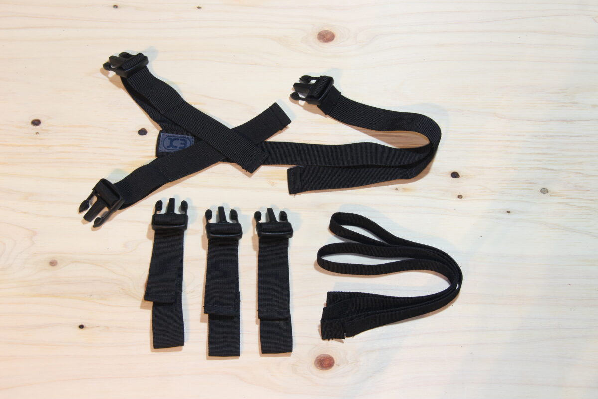 付属する取り付けパーツ。上がÝ字ベルトで、下がループ式ベルト。