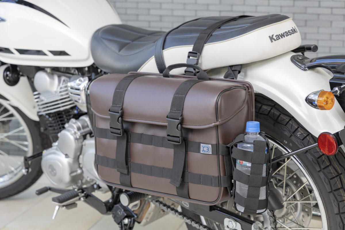 走行中の後輪やチェーンにバッグを巻き込んでしまったり、サイレンサーに触れて溶けてしまったら大事故につながる可能性もあるので、装着の際は、サイドバッグサポートなどを併用して必ず本体が内側に入り込まないよう徹底してもらいたい。