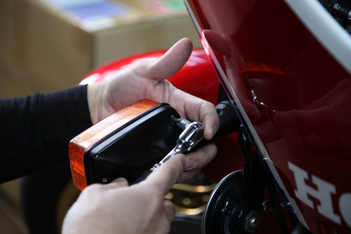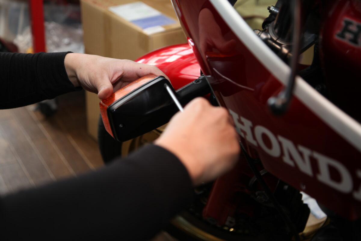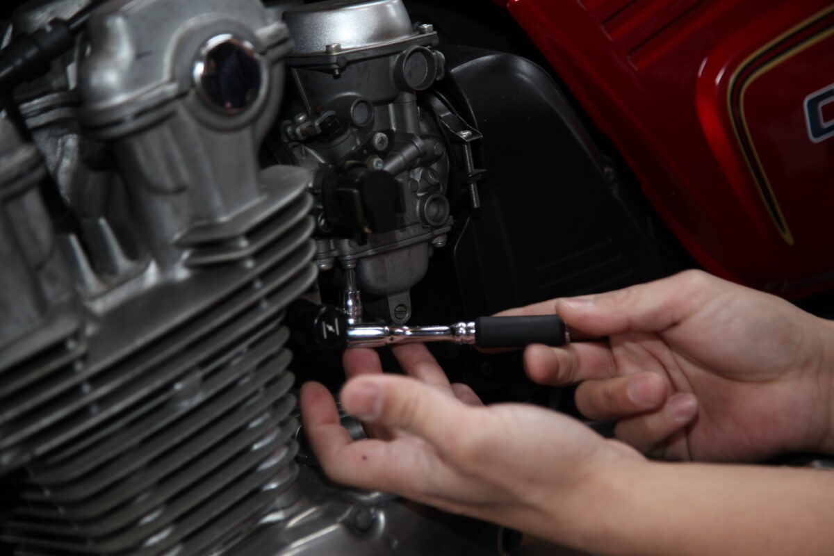 考えたくないが、転倒などのトラブルはいつも可能性がある。レバーの位置の修正などはいつでも対応したい。また、絶版車オーナーの方にもこのセットは「合っていると思う」と林さんは言う。「キャブレター車の場合、オーバーフローというトラブルが多いんです」燃料をエンジンに送り込むキャブレターにガソリンが入りすぎて、機能不全になってしまうこと。フロートを外してガソリンを捨てるという作業が必要だ。このキャブレター下側のスペースが狭い場合が多く、1/4サイズはピッタリなのだ。
