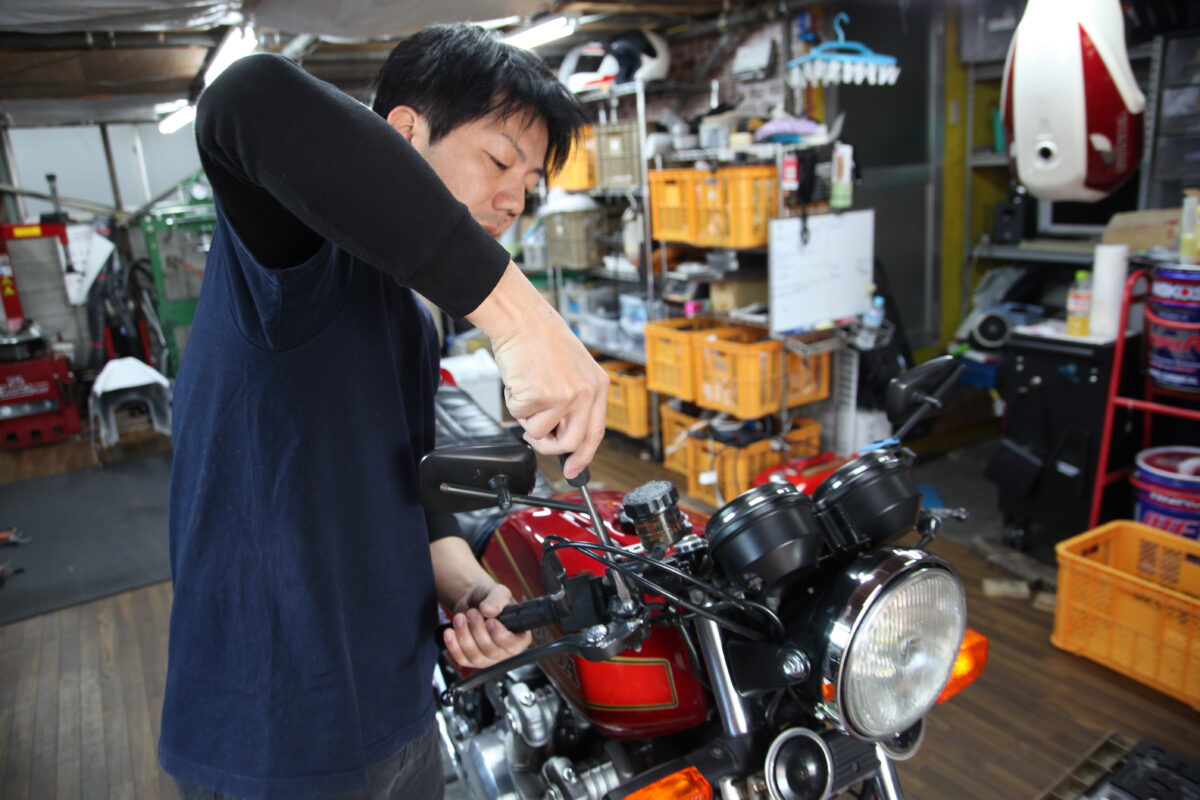 CBをはじめとした絶版車のメンテナンスやカスタムで有名なショップであり、ユーザーへメンテナンスの指導をすることもある、T.T.Rモータースの林代表。今回は『Ko-ken(コーケン)』の製品を手にしながら、工具の使い方や選び方のポイントを教えてもらった。