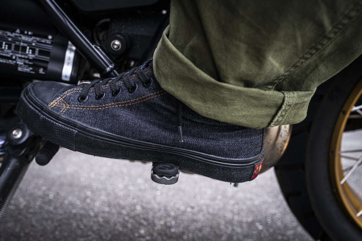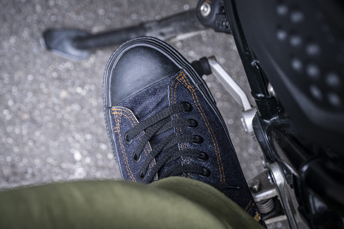特にバイクの場合ではステップからのインフォメーションも大切ですよね。柔らかくグリップ力に優れるソールはステップをしっかりと捉え、なおかつデニム素材ならではのフィット感は足首から足裏まで心地よい一体感をもたらしてくれました。