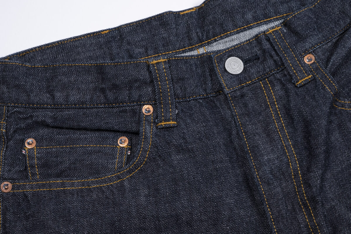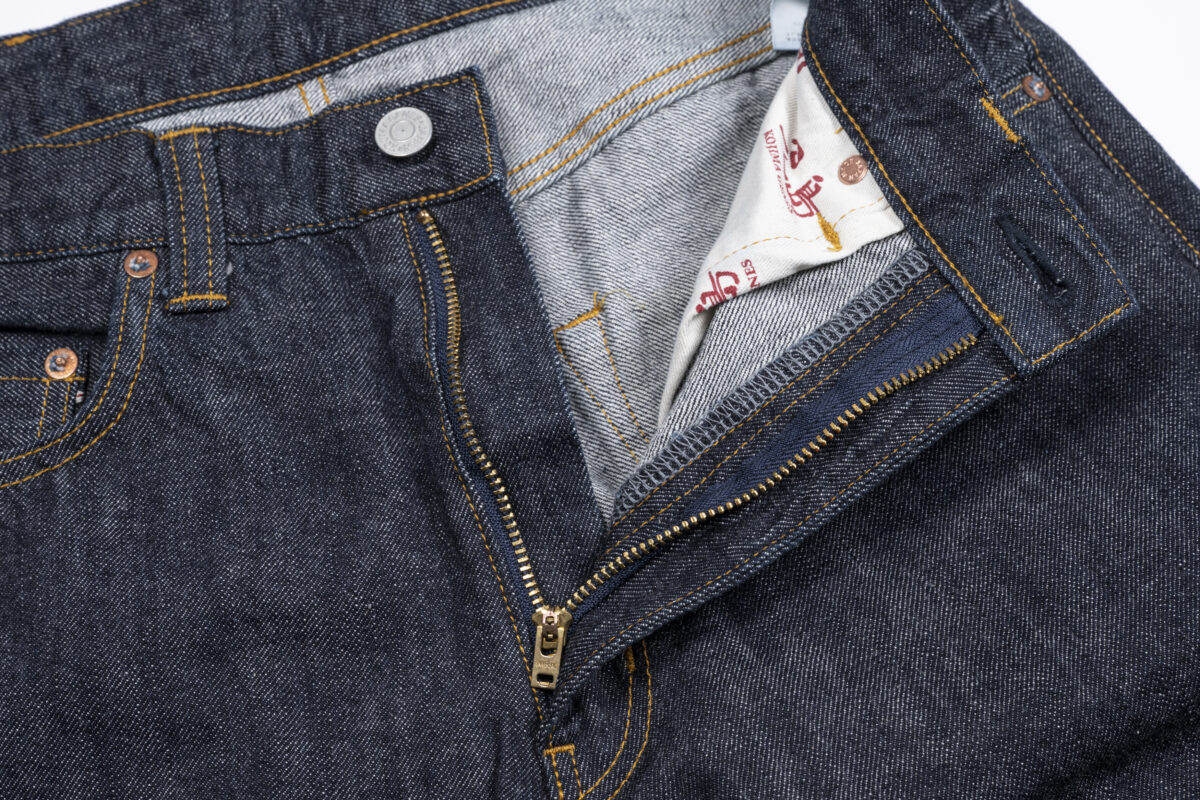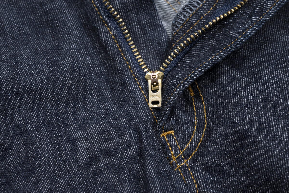 リベットにはオリジナルの刻印入り。フロントはジップフライを採用しています。
