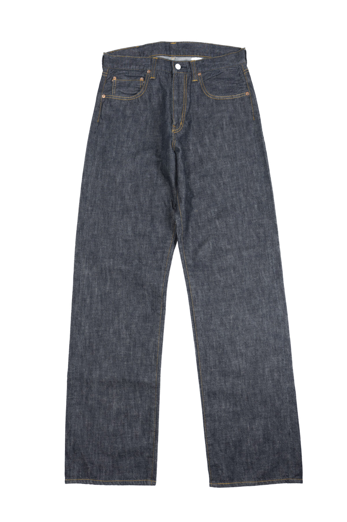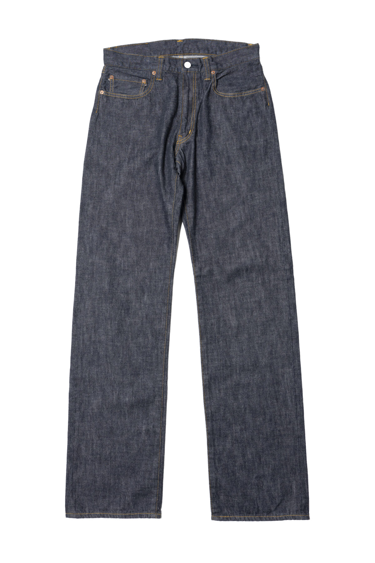 こちらは王道のストレート。太ももから裾までほぼテーパードなしで、ズドン!とストレートなシルエットを楽しめるクラシックな1本です。ワークブーツとの組み合わせも良好ですし、下半身にはゆとりを持っておきたいという方にもおすすめの1本です。