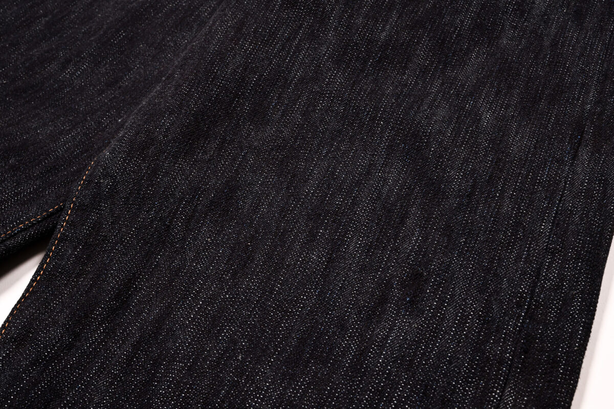 こちらはRNB-1000RZはどんなスタイルにも合わせやすいレギュラーストレートのジーンズです。極太の5番手スラブ糸は新品の状態でも特徴的な織り目と凹凸感を持っていて、見るからに美しい色落ちが期待できます。この独特な凹凸感やざらつきは、古い織機を使って時間をかけて織ることで生まれるもの。他にはないこの質感は、新品の状態でも所有欲を満たしてくれます。ジーンズ自体は防縮加工済みなので、洗濯をしても極端なサイズ変化がないことも嬉しいポイントです。