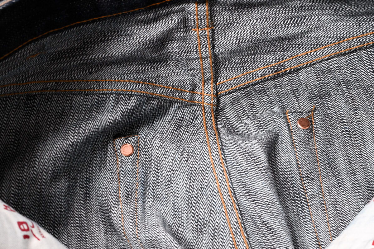 RNB-1000Vは19オンス・スラブデニムシリーズの中でも最もヴィンテージ感を打ち出したジーンズです。シルエットは癖のないレギュラーストレートながら、ひと筆縫いの革パッチをはじめ、フロントのボタンフライなど、ヴィンテージファンも納得のディテールを備えています。