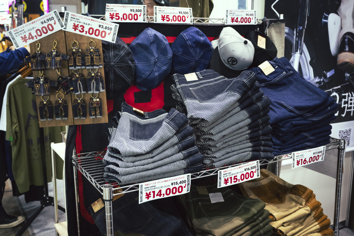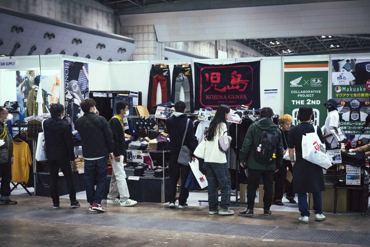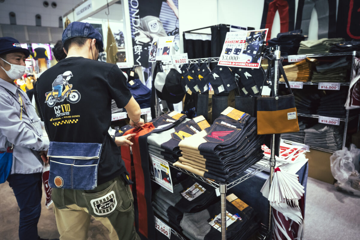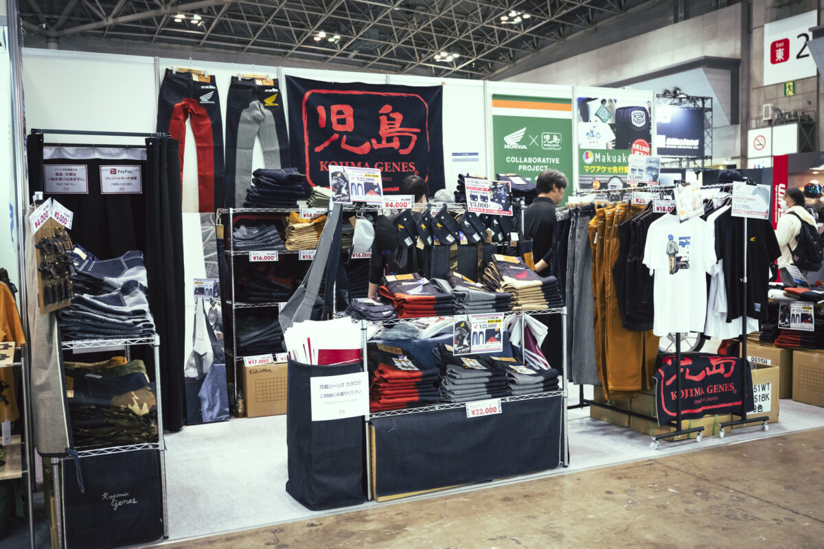 定番商品から話題のホンダとのコラボアイテムまでほぼフルラインナップと呼べるアイテムを展示・販売していた児島ジーンズのブース。会場中央の通路脇という立地の良さもあって、初日から最終日まで多くの来場者で賑わっていました。