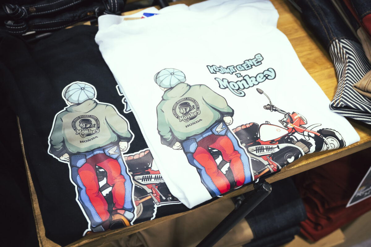 モンキーコラボパンツに合わせて発売されたTシャツや、ホンダウィングマークの入ったデニムミニポーチ。こちらも期間中は飛ぶように売れていました。ホンダオフィシャルのアパレルとも違うアプローチで作られたアイテムだからこその個性。この手のアイテムは買えるうちに買っておくのが吉! 買い逃してしまうと、あとあとプレ値で買うことになるのは目に見えていますので、早めにゲットしておきましょうね。