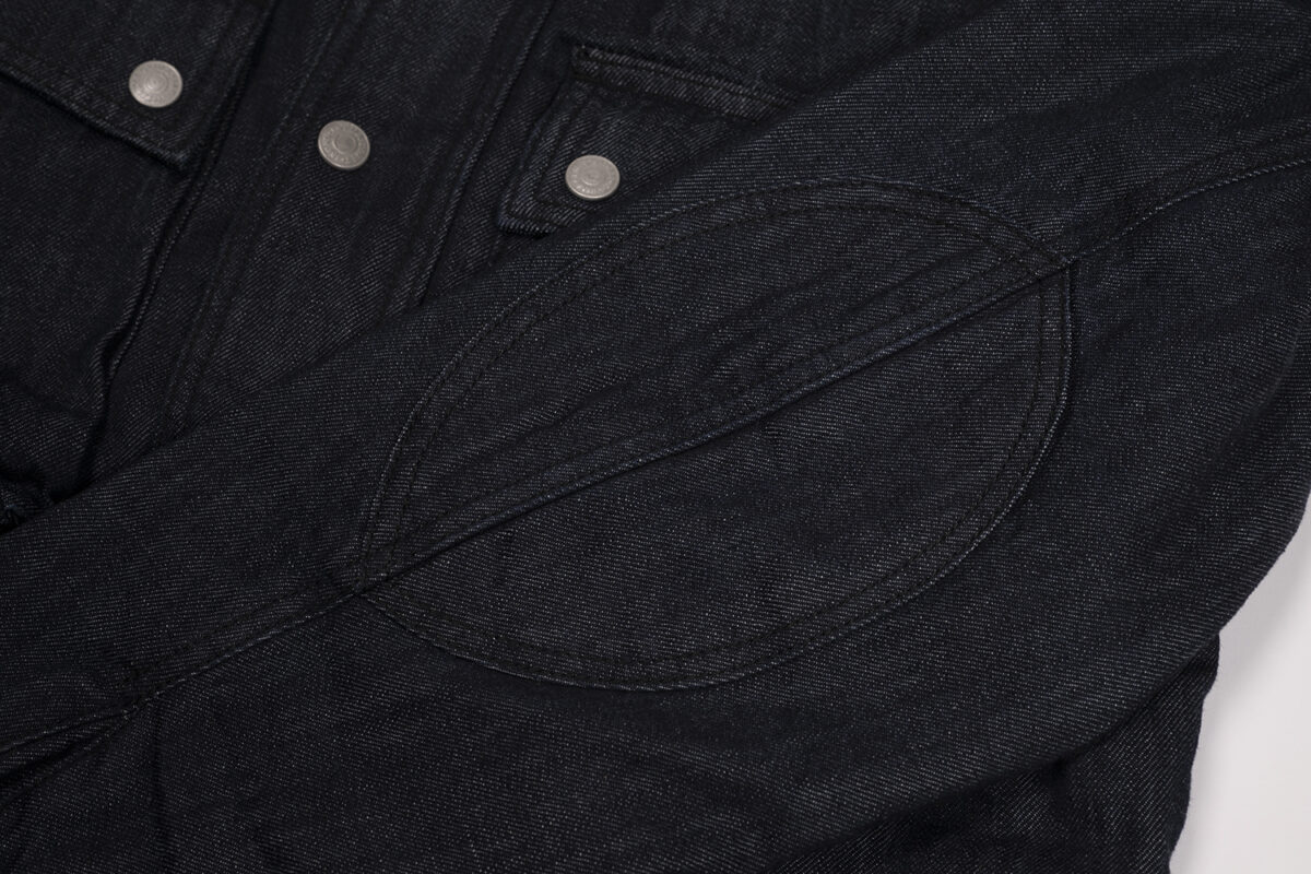 肩と肘の当て布もデザインのワンポイント。ストレスのかかる部分なので、ジャケット自体の耐久性も向上しています。