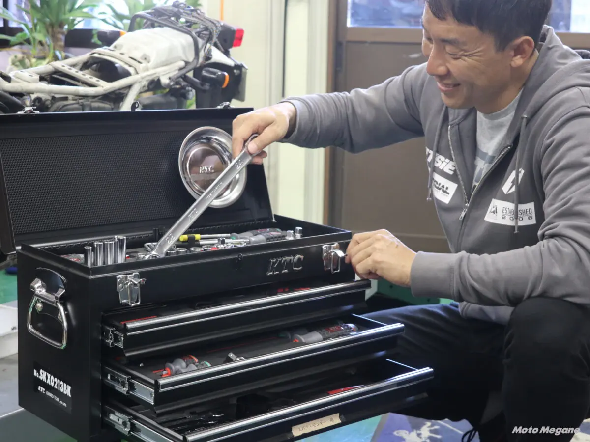 「もともと自宅の工具がKTCだったんです。高い精度の工具に慣れていたこともあって、それが当たり前と思っていました。格安工具でも作業できなくはないですが精度が低いため、メンテビギナーの方だとネジやボルトの頭をナメてしまうことがあるかもしれませんね。