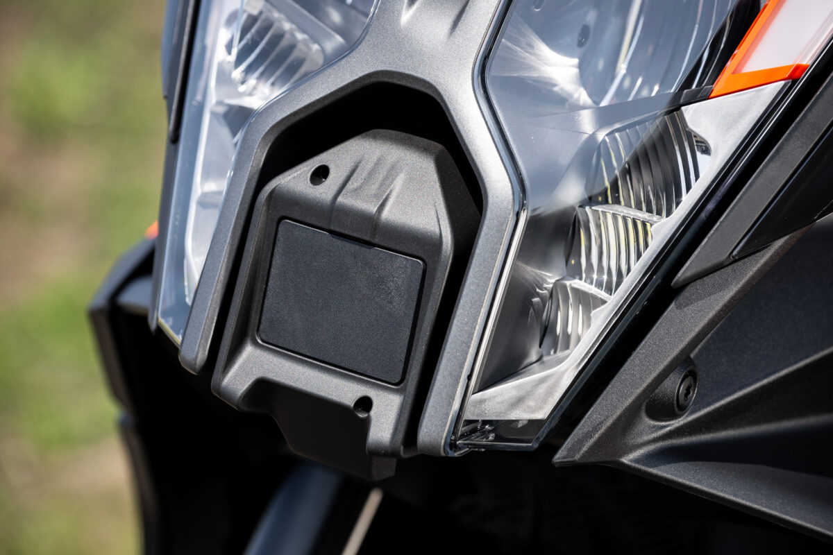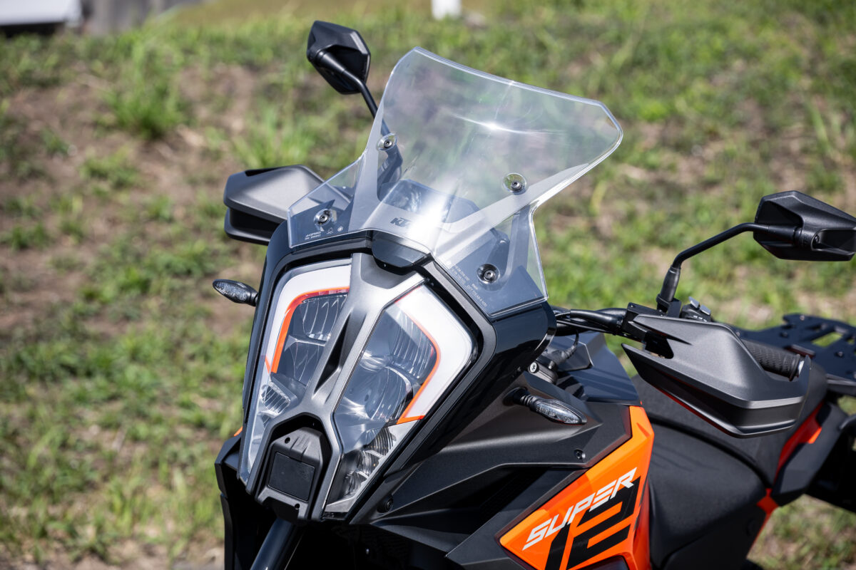 コーナリングライトを備えたLEDヘッドライト。高さ調整ができるウインドスクリーンの防風効果も絶大だ。
