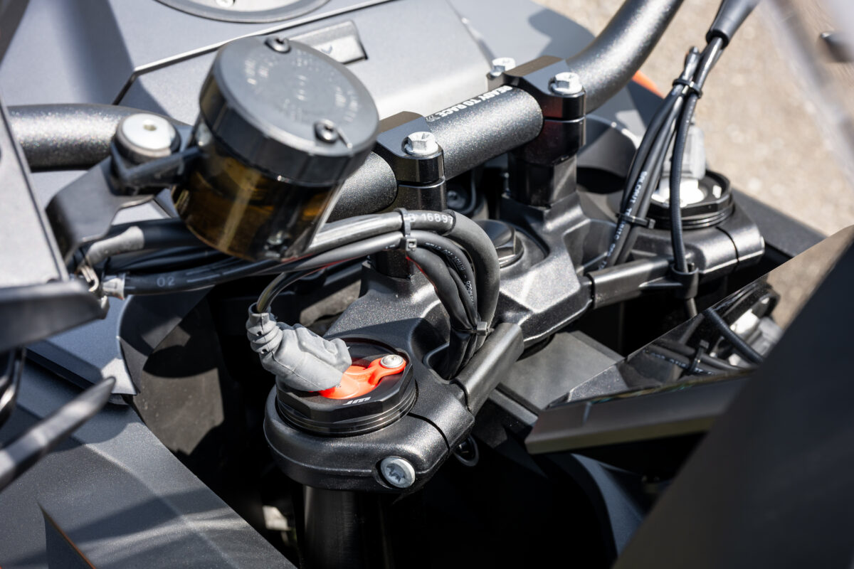 また前車との距離の設定も任意で変えられるうえ、このACCには「コンフォート」と「スポーツ」の二つのモードもあり、スポーツだと、より加減速がダイナミックになる。ACCという快適装備にまでライディングの楽しみを詰め込むあたりが、KTMがライダー重視のバイク造りをしている現れだ。