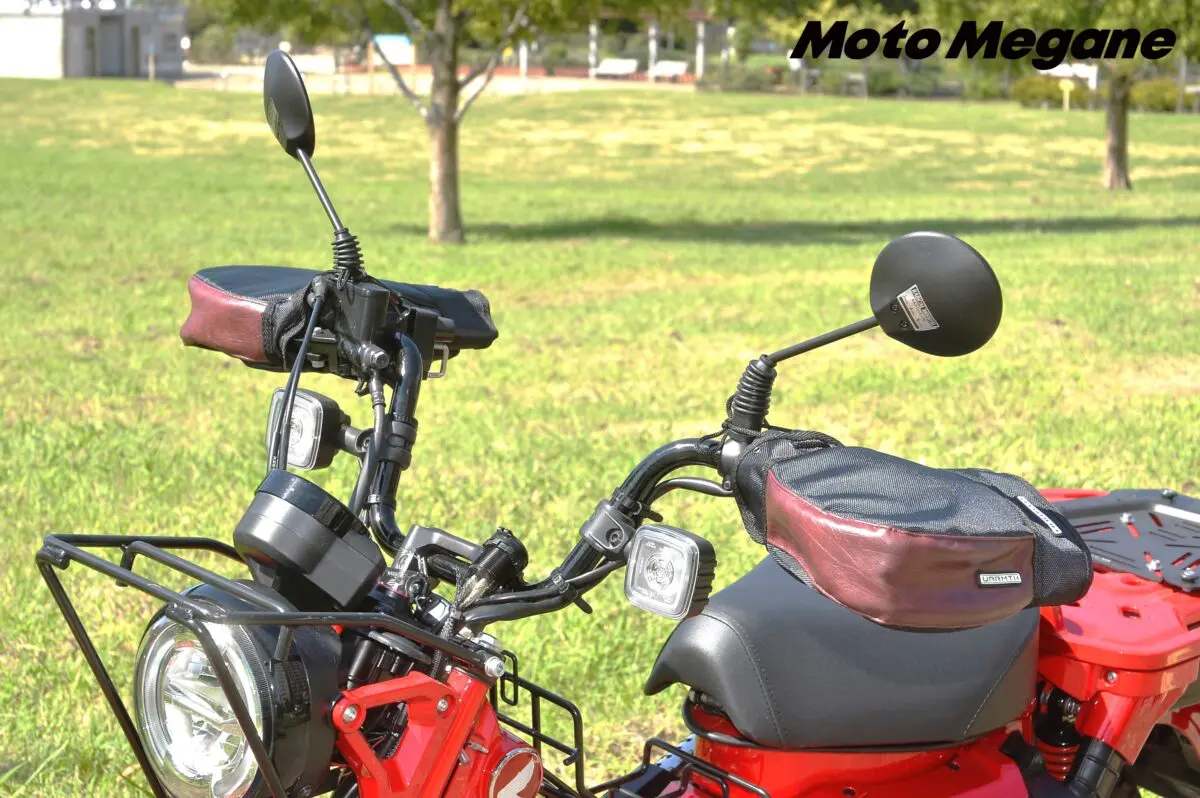 ハンドルを大きく覆うような従来のデザインから劇的にスリム&コンパクト化され、カブシリーズのユーザーだけでなく、幅広い原付二種クラスのオーナーから注目を集め、次いで防水仕様も発売されて、今や知る人ぞ知る定番商品となった。操作性との兼ね合いで極限までコンパクトなサイズを検討したことで、今までにないハンドルカバーが誕生した。
