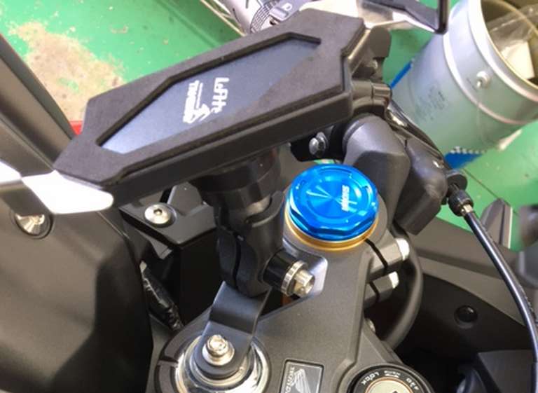 F-LOCK HAWK1には、ハンドルクランプとスマホマウントがセットになったパッケージも存在するが、それぞれの単品パーツを自分好みに選べるのも魅力の一つ。パーツを組み合わせれば、ミラーやステムホールをベースにして、アクションカメラを取り付けるといった、通常では頭を悩ませるマウント方法も可能となっている。