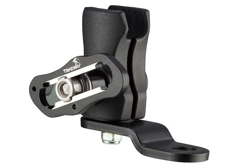 エフロックミラーマウント本体はミラーやステムホールに固定できる。