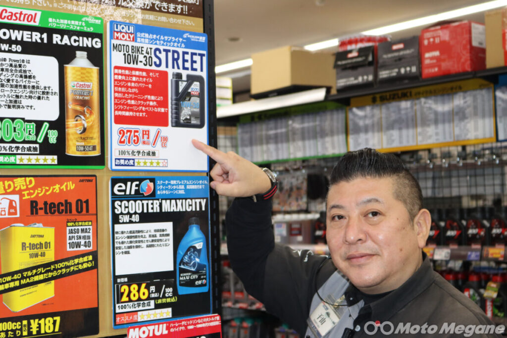 スクーターの場合、オイル量が少ないので量り売りを求めるユーザーが多いのだが、その要望に答えられるようにSTREET用のLIQUI MOLYオイルを量り売り設定している。