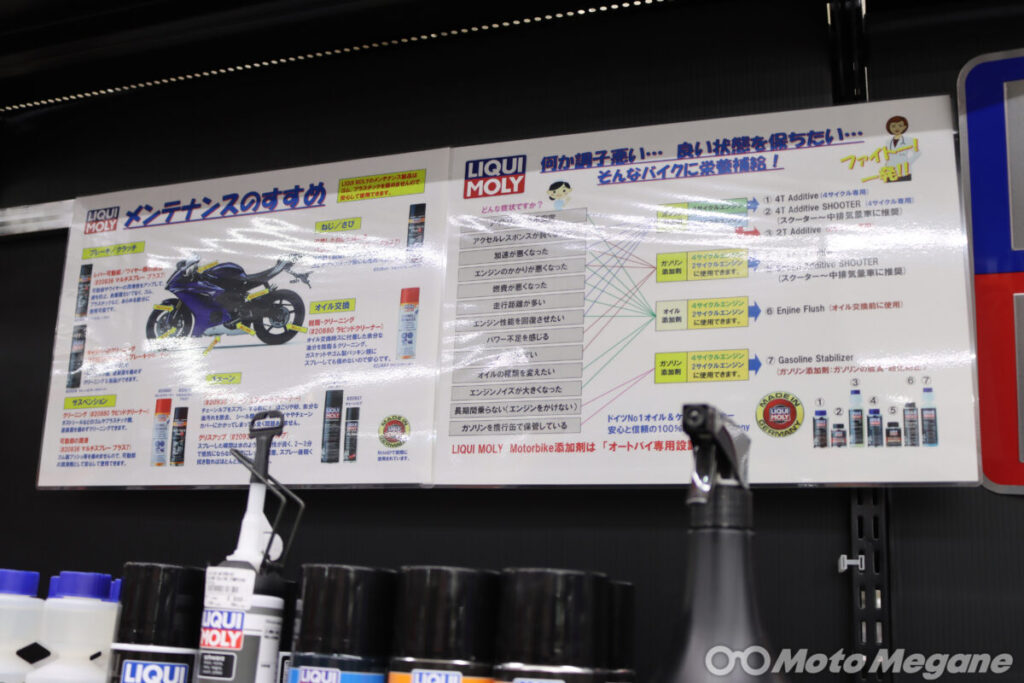 LIQUI MOLYlオイルは幅広い種類のオイルをラインナップしており、車種や排気量にあったオイルを選ぶことが可能だが、その中でもスクーターにも使用できる「STREET用オイル」は比較的人気が高くよく出ているとのこと。