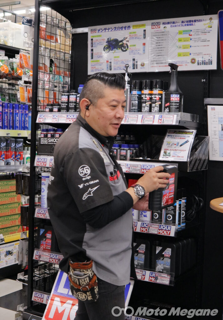 干山さん自身も愛車のハーレーにLIQUI MOLYオイルを入れて使用したところ、コンディションは快調だったとのこと。実際に経験しているだけによりお客様に勧めやすくなったそうだ。