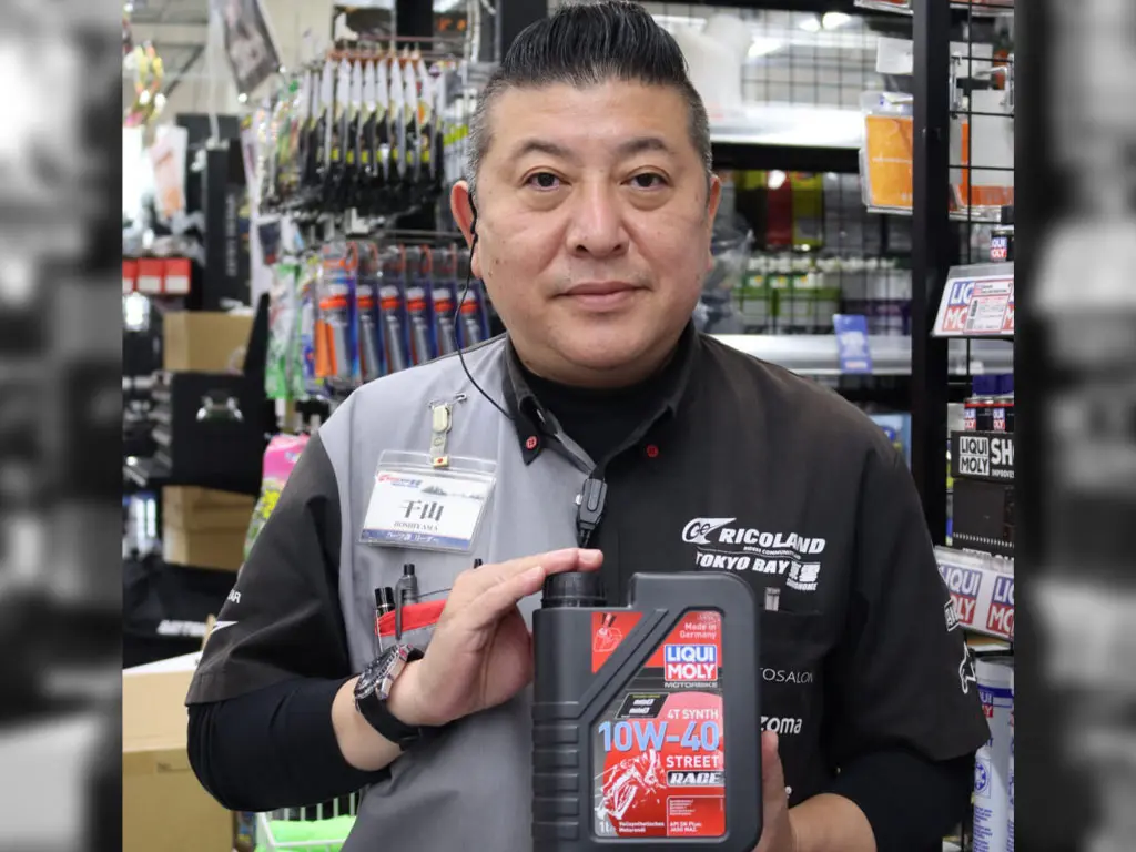 今回、LIQUI MOLY製品について話を伺ったのは、ライコランドTOKYO BAY 東雲店で、パーツ部門のリーダーを務める干山 穣さん。長年に渡って同店でパーツやオイル&ケミカルを管理、販売するベテランだ。