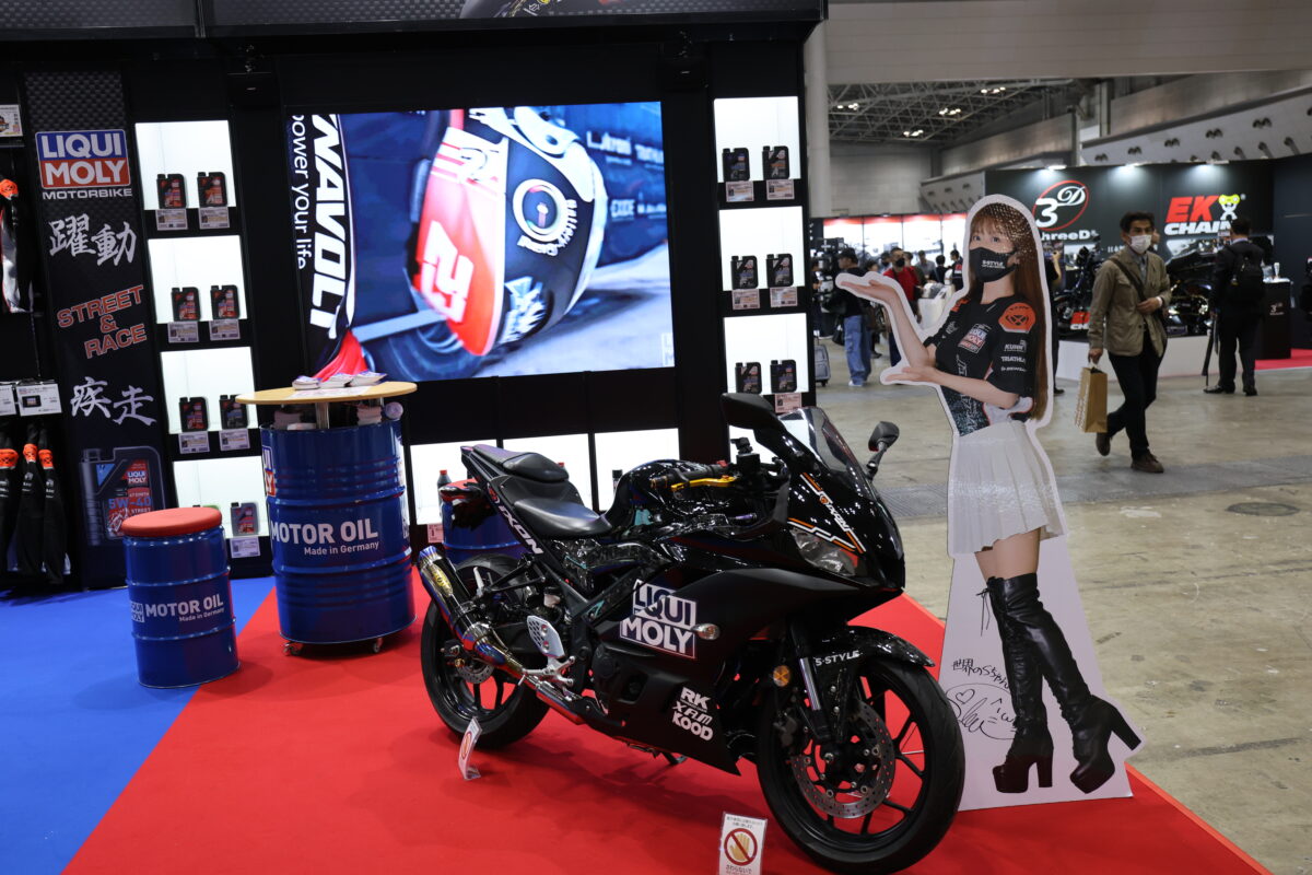 土曜日と日曜日にはLIQUI MOLYのオフィシャルサポーターであるSちゃんが3台目の愛車・YZF-R25とともに登場。ストリートユースの彼女が登場することで、別物と見られがちなレースとストリートが意識の中で交差していく。