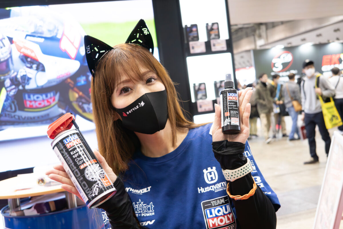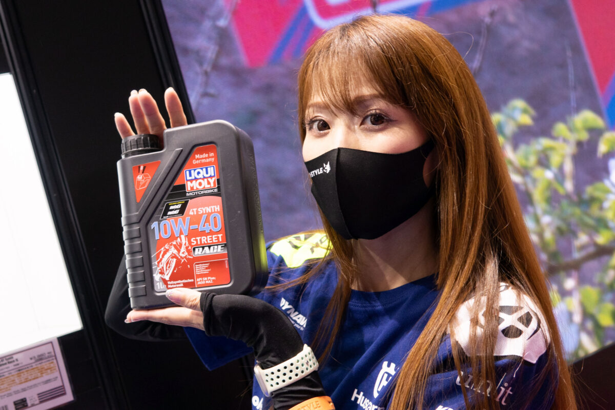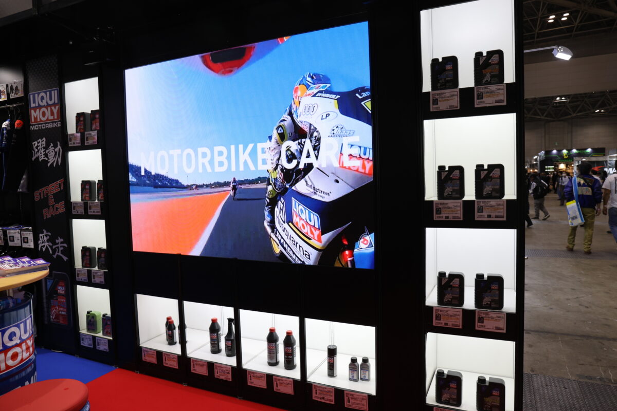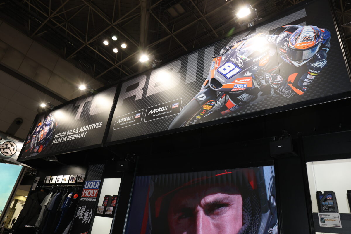 レースで統一された公式オイルは、厳しい品質基準を満たしていないと採用されないもの。いかにクオリティが高いかがわかる。ブースの看板には2025年のMoto2クラスへ『LIQUI MOLY Dynavolt Intact GP』から参戦するマニュエル・ゴンザレス選手とセナ・アギウス選手の写真が使用されている。二人ともトップ争いをくり広げる、有望なライダー達だ。