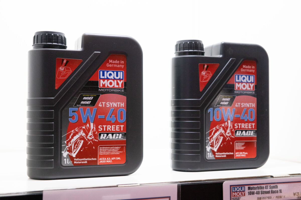 大注目なのはSTREET RACEだ。前述の通り、Moto2/Moto3クラスの公式オイルがそのまま市販されており、最上級のエンジンオイルをストリートで体感が可能だ。フル・シンセティックオイルで、粘度は5W-40 /10W-40 / 10W-50 / 10W-60が用意されている。国産メーカーの場合は10W-40の指定が多い。0W-30指定のHONDA車には5W-40がオススメだ。