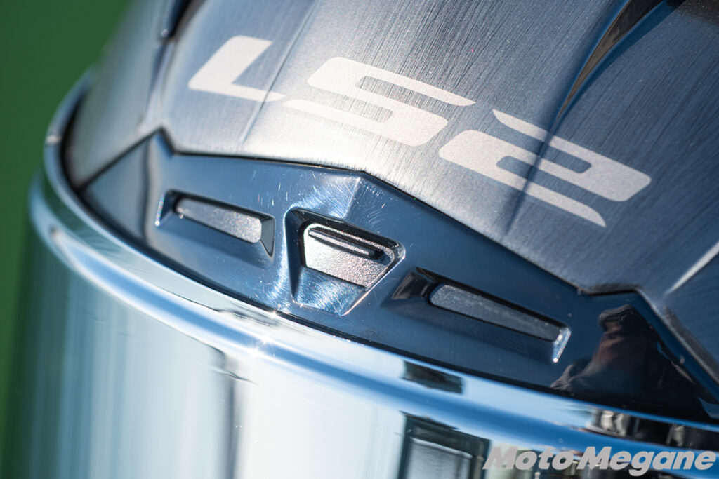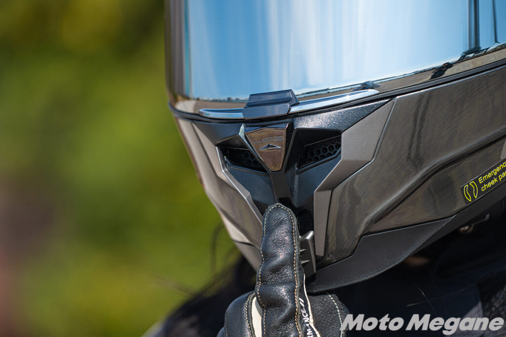 一般的なヘルメットではチンガードのベンチレーションは全閉と全開の2パターンが主流。しかし、LS2 Challenger Fでは全閉から全開まで3段階に調整が可能です。