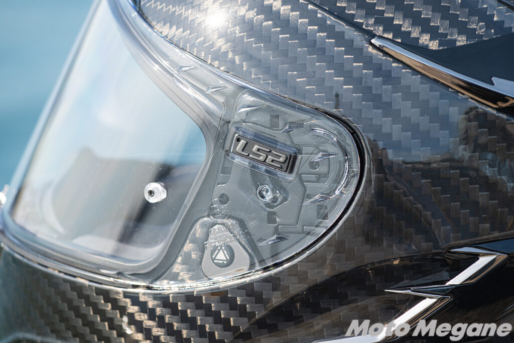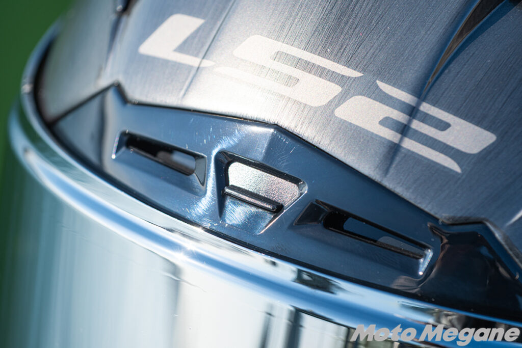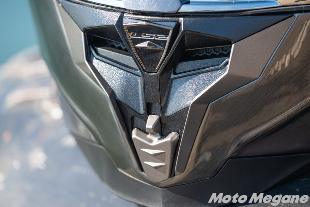 LS2 Challenger Fではインナーバイザーを装備しています。バイザーは帽体前頭部に格納する作りながら、帽体はそれをまったく感じさせないシャープなもの。一見するとインナーバイザー付きのヘルメットには見えないほどデザインは洗練されています。また、インナーバイザーの操作は帽体左側にある大型スライダーを動かすだけ。適度なクリック感で走行中でも簡単に開閉が可能です。