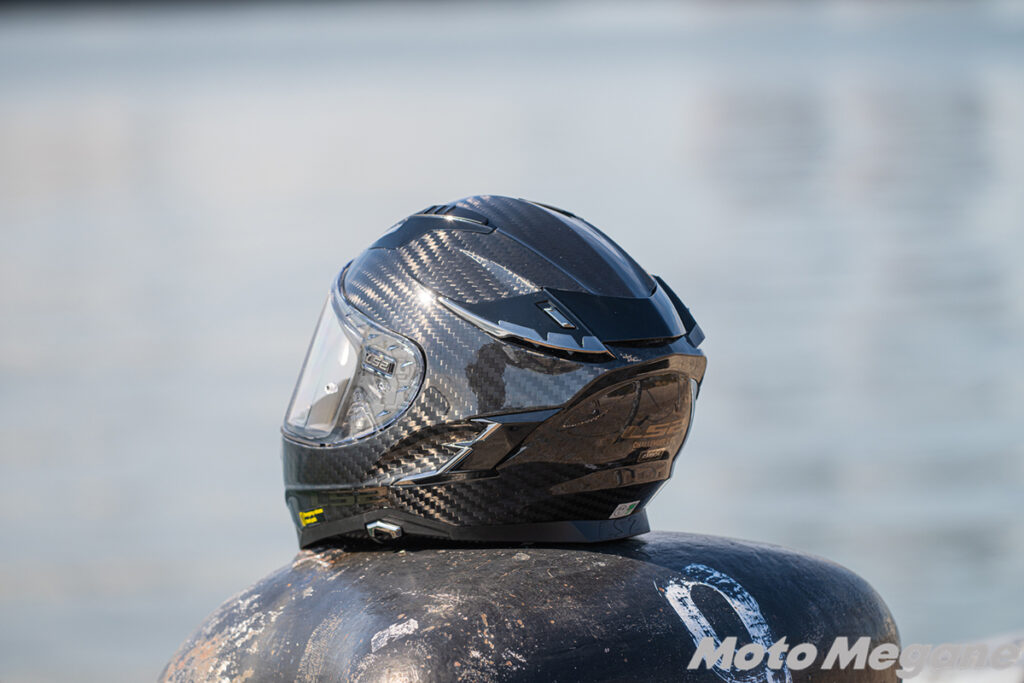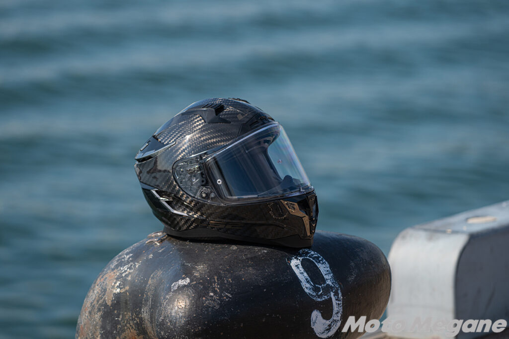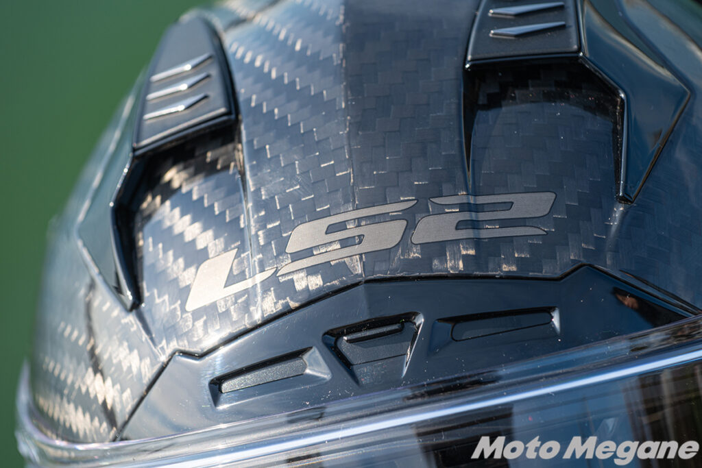 今回Challenger Fと共にテストしたのが、カーボン帽体を採用したLS2 Challenger C GTです。基本的な機能はChallenger Fと同等ながら、カーボンファイバーシェルによるカーボン模様と、専用の内装&ベルトを持つのがChallenger C GTです。