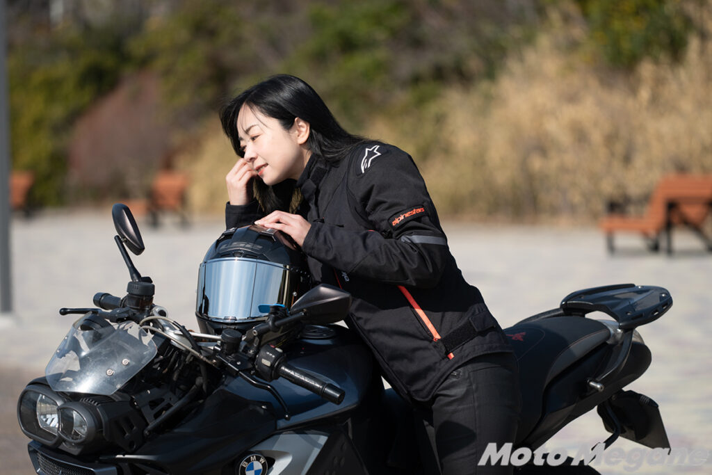 じつはテスターのTOMOさんはカーボンモデルのLS2 Challenger C GTで九州までツーリングしたこともあるそう。片道1,000km超の長旅では、視界の広さはもちろん帽体の軽さや空力性能、静粛性、そして取り外しが簡単な内装にとても感動したそうです。女性の場合はファンデーションを使用するなど、内装が汚れてしまいがちですが、Challengerシリーズの内装は簡単に取り外しができて気軽に洗濯できる点は、TOMOさんも特にお気に入り。
