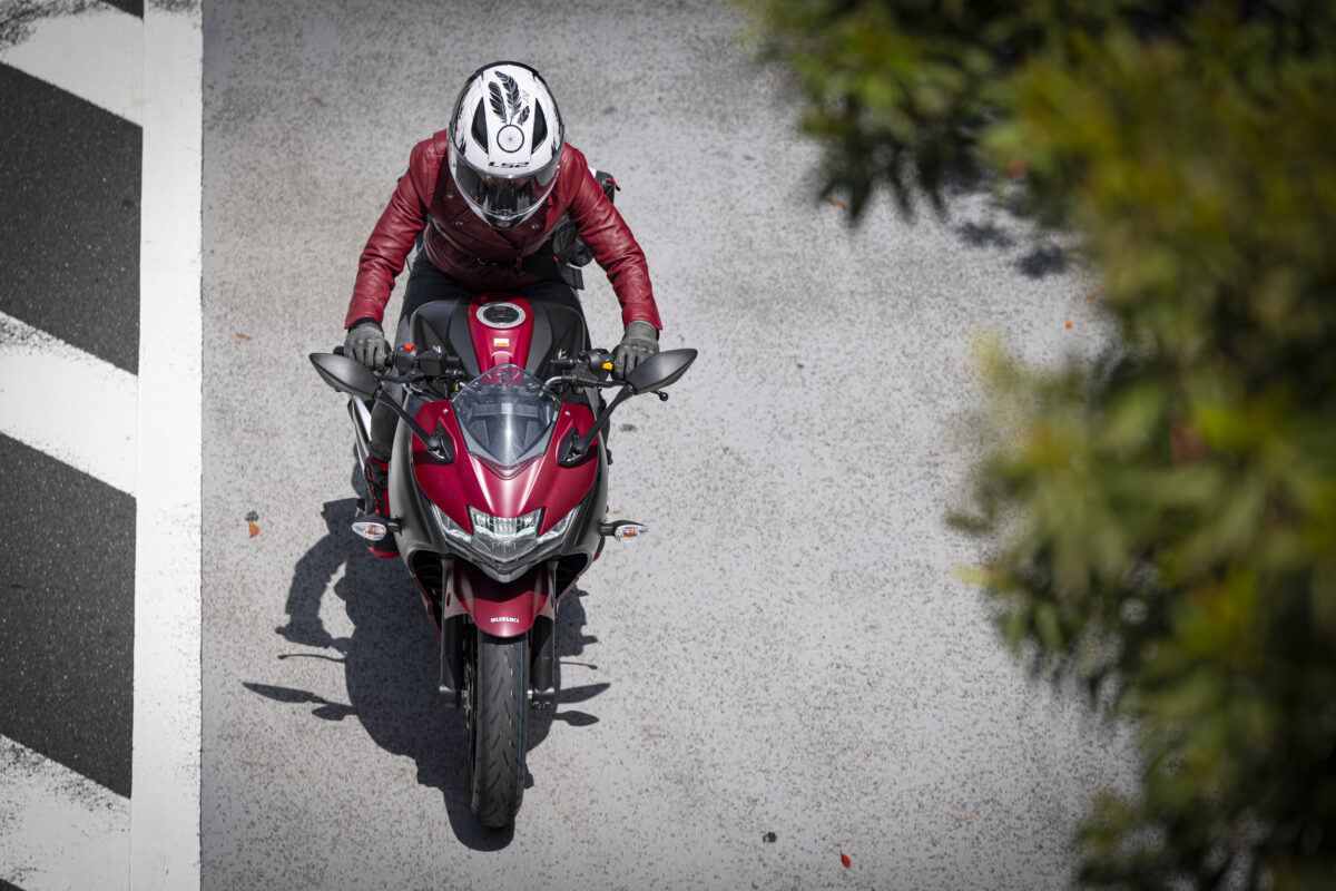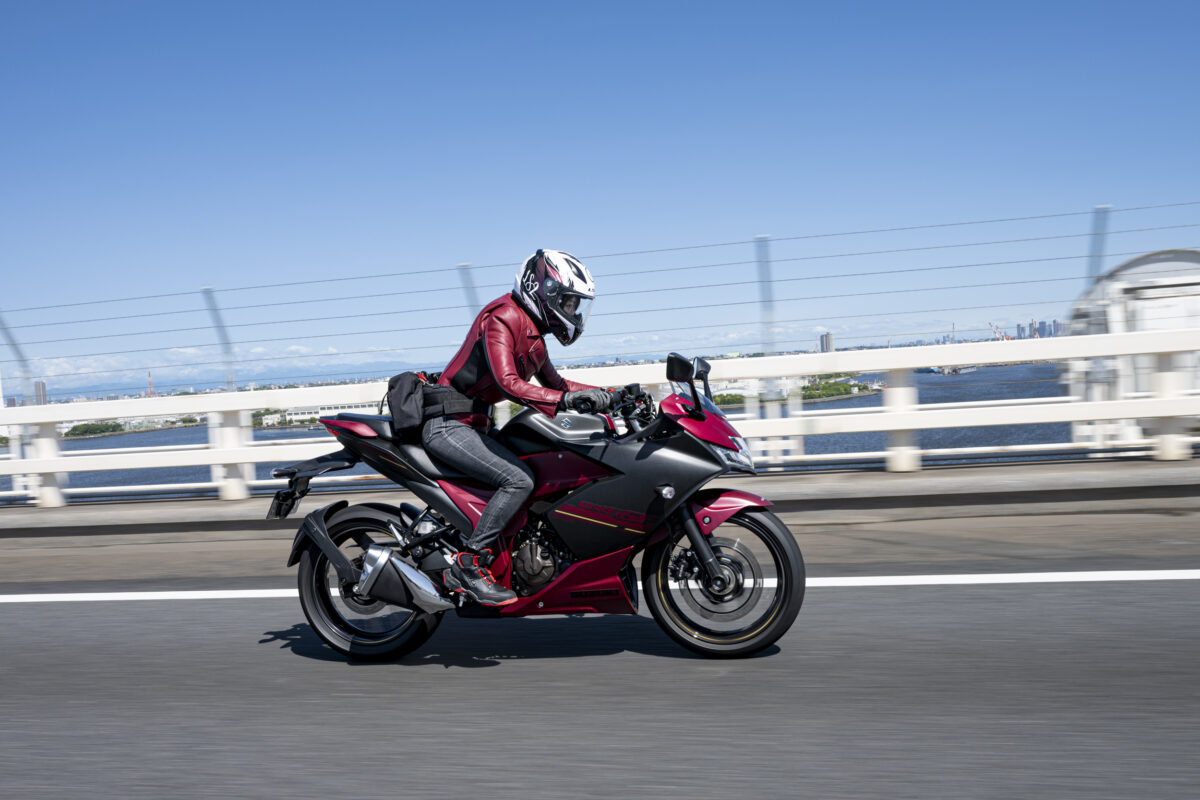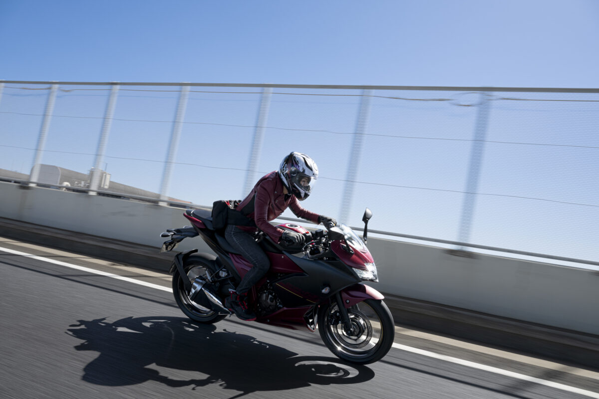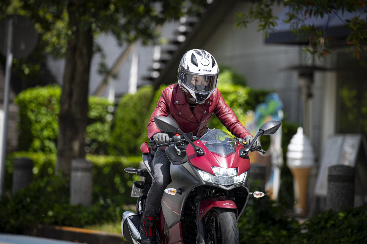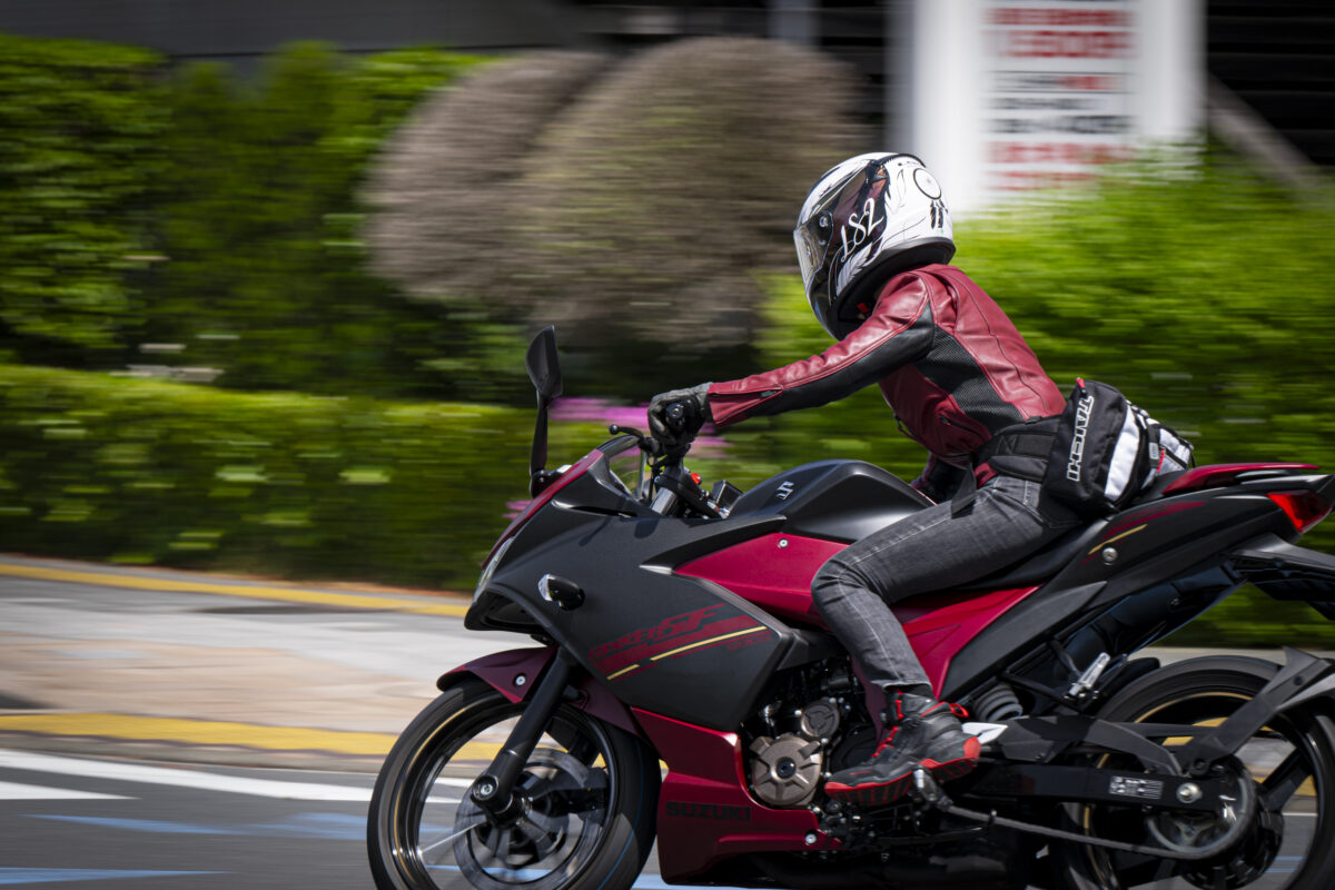今回撮影でお借りしたのはスズキ・ジクサーSF250。RAPID Ⅱとの相性も抜群、軽快なスポーツバイクで疾走する桜井さん。実際にかぶって走行した印象はどうでしょう?