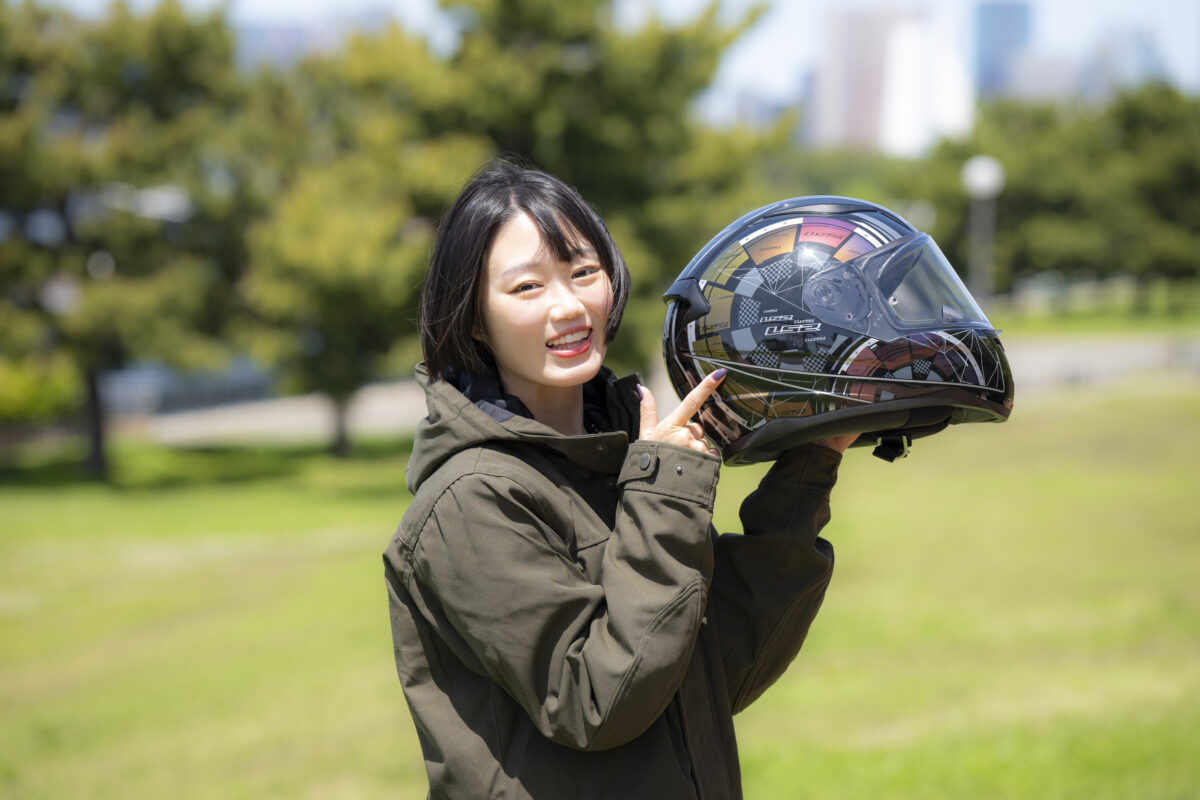 男性ライダーだとあまりそういうことは考えないものですが、女性ライダーならではの視点で内装の印象を語ってくれた桜井さん。たしかに、友達と写真を撮ったり自撮りをする時には顔のつぶれは気になっていまうものですよね。正しいサイズを選んでさえいれば、心地よいフィット感を得ながら安全性も確保できる、それもまたRAPID Ⅱの特徴のひとつと言えるでしょう。