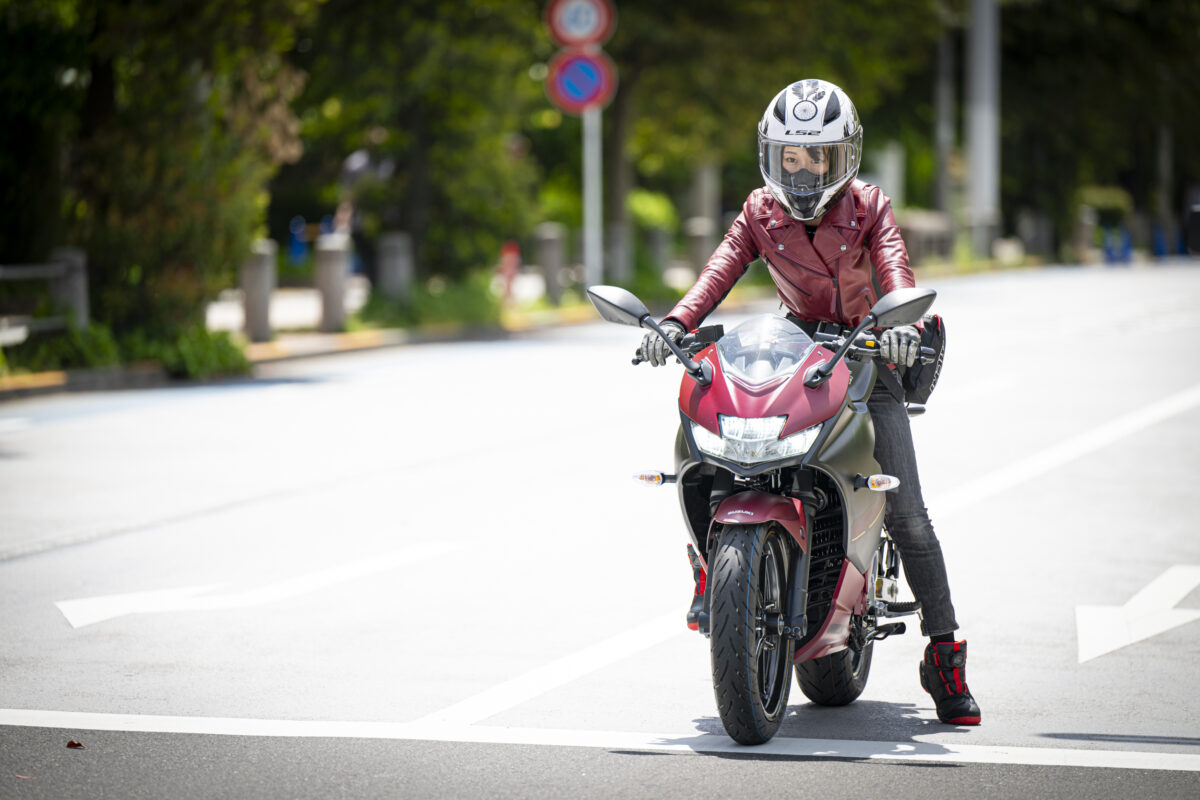 「高速道路でもヘルメットはすごく安定していて、車線変更で頭を動かしても風圧で変に揺さぶられることもなかったです。視界も広くて見やすいですし、風切り音も押さえられていて快適ですね。スピードを出しても疲れないのはやっぱり軽いからなんでしょうか?」