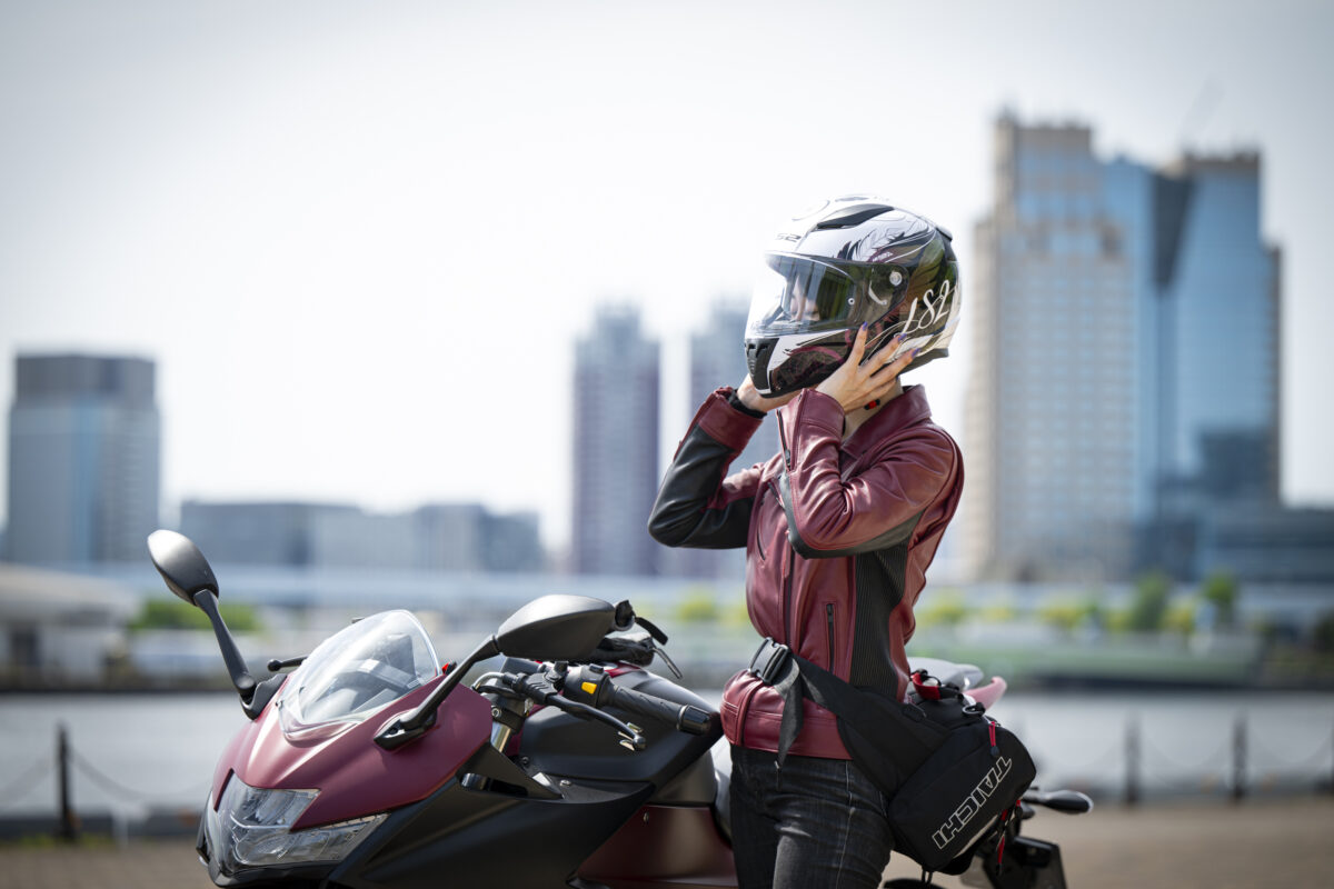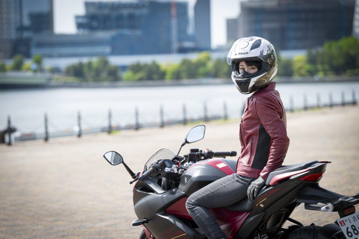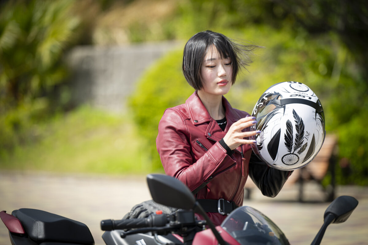 RAPID Ⅱは街乗りからツーリングなどオンロードユースを想定したフルフェイスモデルで、LS2の中でもベーシックなモデルのひとつ。とはいえ、LS2らしいシャープなデザインと使い勝手を考え抜いた各部のつくりは、上位モデルにもまったくひけを取らないもの。今回このRAPID Ⅱのインプレライダーとしてご登場いただくのは、モデルとして活躍する傍ら、近頃ではバイク専門誌でインプレや試乗記事も手がける桜井つぐみさん。ウルトラマンや仮面ライダーなど特撮を愛してやまないマニアックな一面も持つ桜井さんは、これまでもLS2のヘルメットを愛用してきたライダーです。