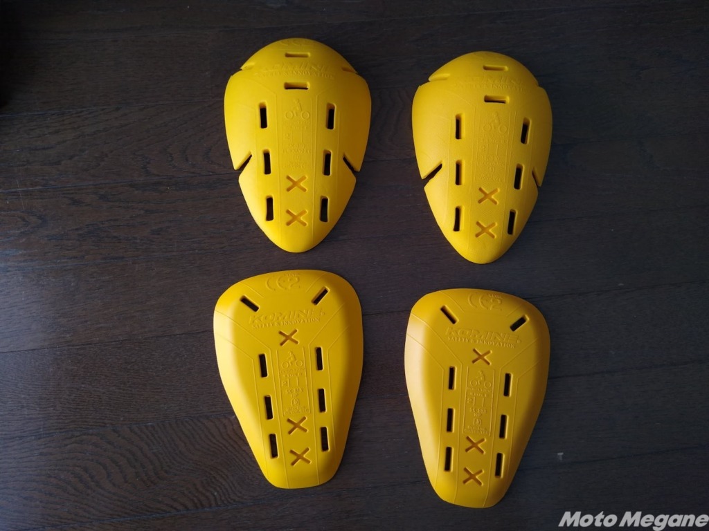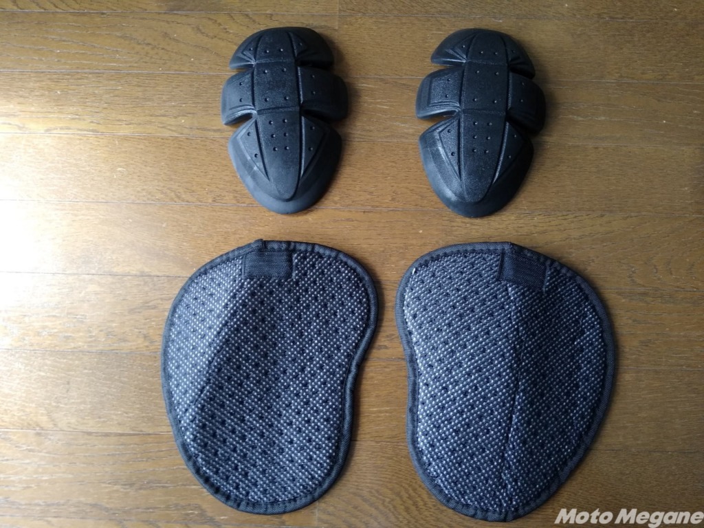 ニーパッドとウエストパッドも標準装備で、それぞれポケットに出し入れする方式で脱着もカンタン。