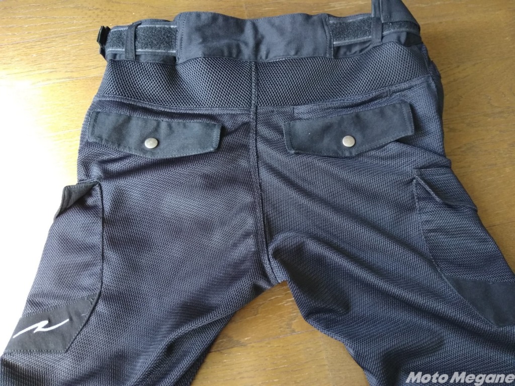 裏面はボタンやファスナーなしのシンプルなポケットが2つ。お尻もメッシュになっていてそれなりに通気性があります。