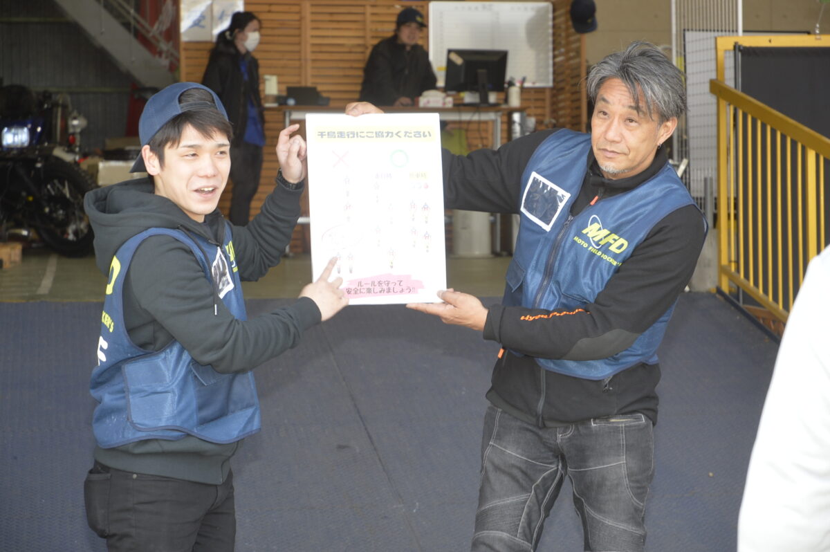 4月5日、6日にわたって開催された試乗会だが、5日の土曜日は天候に恵まれたこともあり、1日でのべ70名以上が試乗を行った。今回のMFDモトフィールドドッカーズの試乗会は、事前説明の時間を含めて、なんと1回約60分もの試乗枠を用意。参加費は1000円(3回)だったが、実際の走行時間は40分以上あり、レンタル料金として考えると破格の設定。なんと参加費にはガソリン代も含まれているのだ。